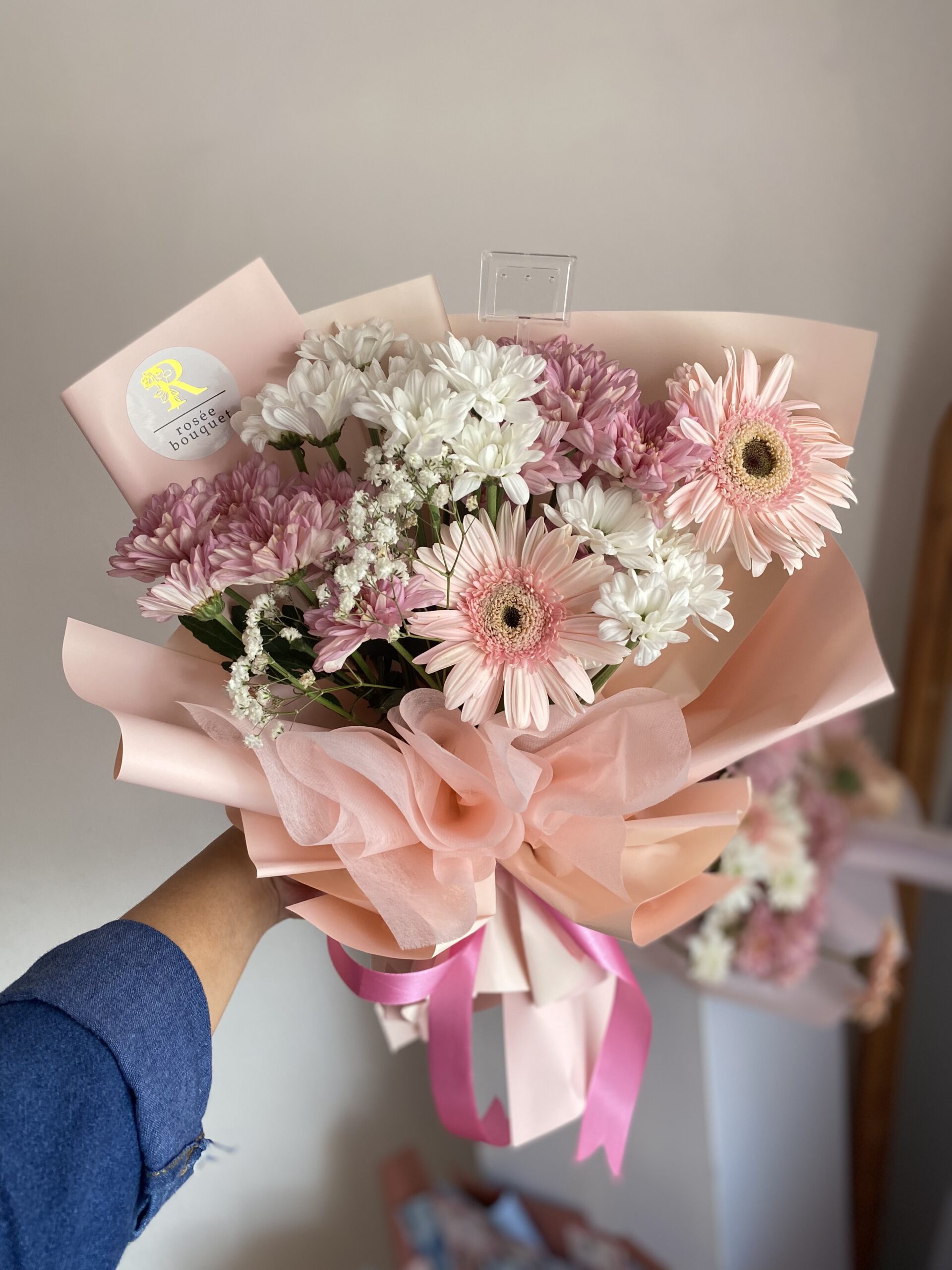 Mix of colorful chrysanthemum spray with gerbera, baby’s breath